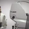 Asian doctor at work during eyesight exam to adult woman in hospital. Dolly shot