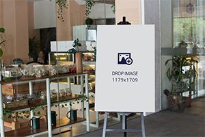 / Huge menu banner inside a pastry shop