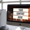 / iMac Video Mockup of a Young Business Woman Arriving at the Office, Fixing Her Documents and Working on Her Apple Desktop Computer