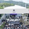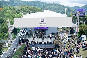 Print image mockup of a clear acrylic paper holder on a black marble reception lobby desk