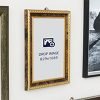 Print image mockup of a golden frame hung on a wall and surrounded by other frames with photographs