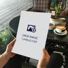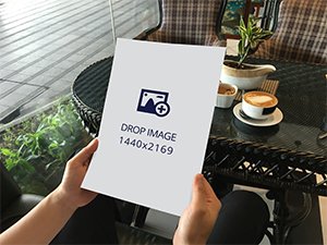 Print mockup of a menu being held by a man having coffee at a cafe quantity
