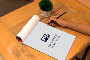 Sketch image mockup of an artist drawing with a pencil on a sketchpad