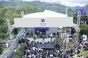 White iPhone 6S image mockup of landscape handheld Apple phone during a late night music concert