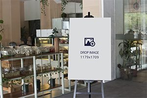 Print image mockup of a golden frame hung on a wall and surrounded by other frames with photographs