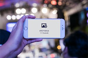 White iPhone 6S image mockup of landscape handheld Apple phone during a late night music concert quantity