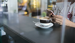 Female barista preparing coffee while checking her iPhone