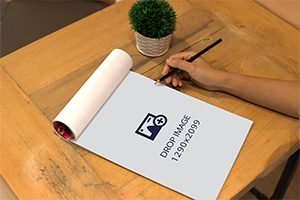 Sketch image mockup of an artist drawing with a pencil on a sketchpad