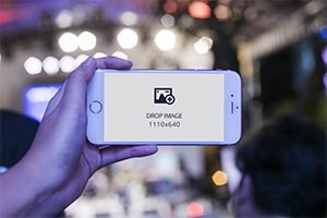 White iPhone 6S image mockup of landscape handheld Apple phone during a late night music concert